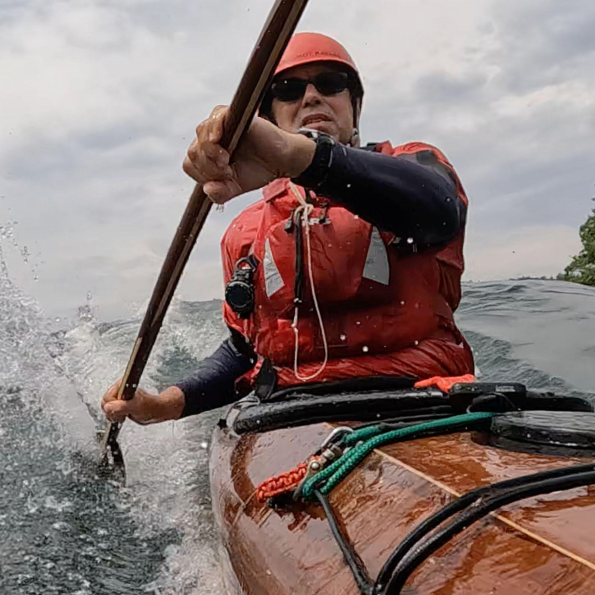 When Nick was 3, his older brother got to paddle a homemade kayak called "Fang" on Cape Cod, but Nick was not allowed. Even 57 years later, he still remembers that rejection. At 10, his father built a kayak, but again, his brother got first use. Determined to change things, Nick designed his own sea kayak after college. For over 40 years, he has designed and built high-performance kayaks and small boats for himself and others. He's published two books on boat building, and his company, Guillemot Kayaks, has designs built worldwide, known for their performance and beauty. One of his kayaks is in the Museum of Modern Art in Manhattan. Nick builds boats out of a love for paddling and being on the water, paddling year-round along New England's coast. He also teaches boat building and kayaking, inspiring others to get on the water. While he still feels a twinge about never paddling Fang, he finds relief in paddling his own creations. |